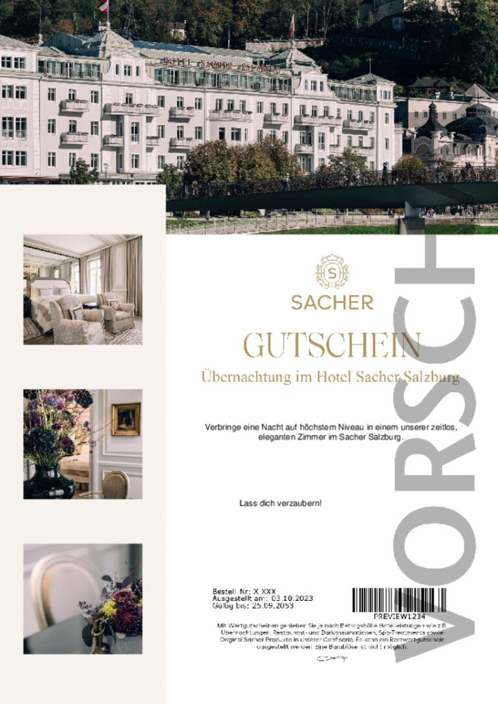 Verschenken Sie die einzigartige Eleganz des Hotel Sacher Salzburg, direkt an der Salzach gelegen, mit Blick auf die Altstadt und die Festung Hohensalzburg. Modernster Komfort kombiniert mit luxuriösem Sacher‑Flair bietet ein unvergessliches Erlebnis im Herzen der Mozartstadt. Wählen Sie ganz nach Wunsch die Anzahl der Nächte sowie die bevorzugte Zimmer- oder Suitenkategorie, von Deluxe Zimmern bis hin zur Sacher Sky Suite. Beliebt als Salzburg Hotel Gutschein für besondere Anlässe.